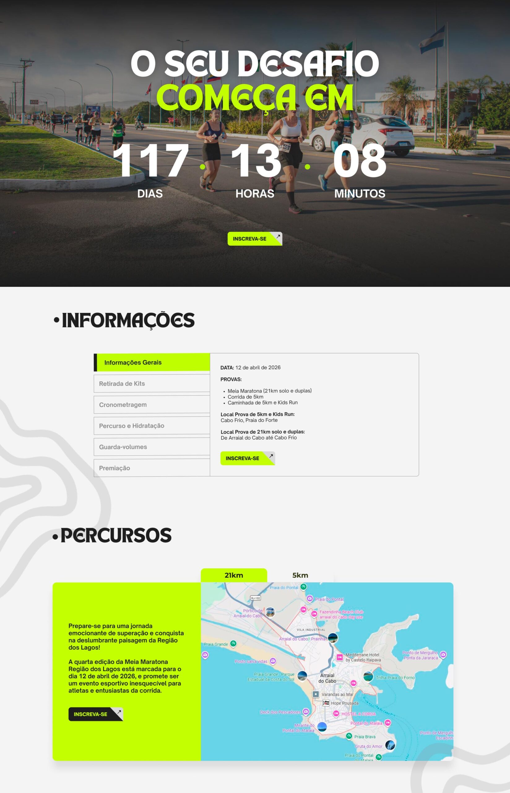 A Meia Maratona da Região dos Lagos é um evento esportivo que une performance e paisagens únicas, reunindo atletas em um dos cenários mais deslumbrantes do litoral fluminense. Com percursos que desafiam e inspiram, a prova proporciona uma experiência completa, conectando esporte, natureza e qualidade de vida.
